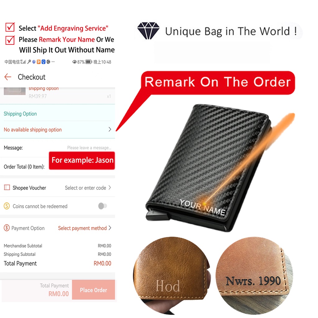 Wallet For Men PU Leather Rfid Mini Slim Card Holder Auto POP Up Aluminum Box