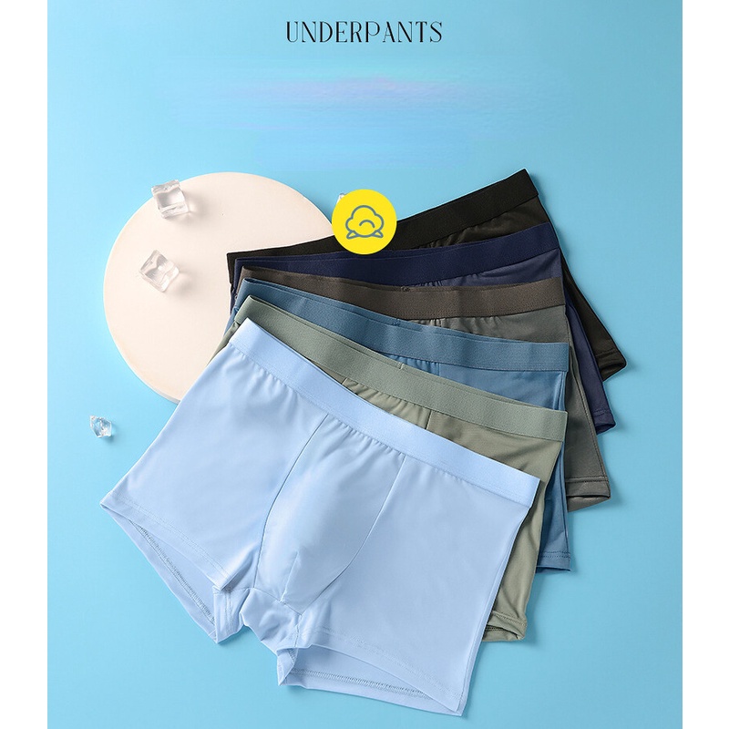 Wholesale Men's Ice Silk Seamless Underwear Solid Color Boxer Shorts Loose Comfortable Antibacterial Boxer Shorts DF1093